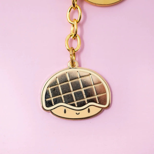 Featuring the bun-derful members of the Steam Team, this collection highlights our bun characters like Laila Bao, Charlie Bao, and Bolo Bob!- Gold enamel design around 1" tall with attached metal keyring and lobster clasp