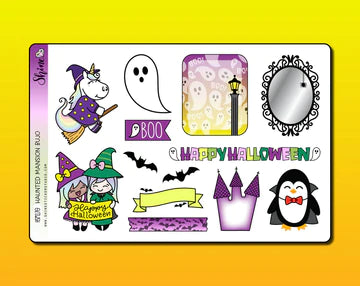 This listing is for a sheet of larger sized stickers featuring elements from our Haunted Mansion collection. These are perfect for bujo planning (bullet journaling) where you can freestyle and get really creative with your planner page decorations. These stickers are larger than our quarter sheet sized deco stickers, and smaller than our die cut stickers. You can even write on some of them!