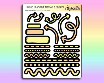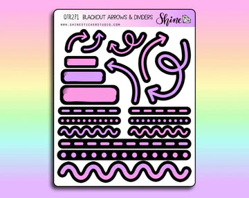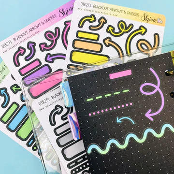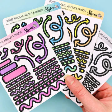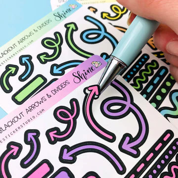 These sticker sheets feature a variety of arrows and marks that you can use to label, decorate, and divide your planner/journal pages. These are printed on our premium matte sticker paper with a black bleed so the colors really pop on blackout planner pages! Available in four different color options.