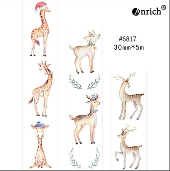 Christmas Washi Tape, Deer Craft Tape, Christmas Giraffe Deco Tape Washi tape is the perfect decoration for personal planners, crafts and to personalise your favourite items. The tape is easy tear and there is no need for scissors. Tape measures 30mm wide and is 5m long.