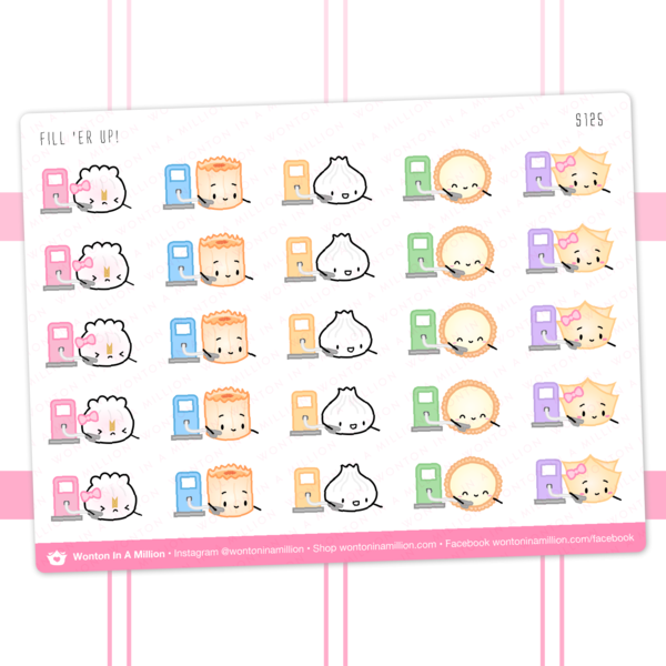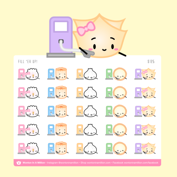 Use these adorable stickers of the Dimsum Steam Team in your planners, scrapbooks, bullet journals and more to remind yourself when to get gas.