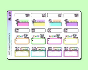 This listing is for a sheet of Luna Peekaboo Boxes stickers, in a variety of styles, in our Shine color palette. These boxes will fit in a standard vertical 1.5" wide box and you can write whatever you like in them.