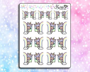 This listing is for one sheet of these adorable and functional planner tab stickers featuring our hand drawn character Luna with dark skin tone. Use these to label sections in your planner by folding them back-to-back with your divider or planner page in-between. If you wish you can label your tab by writing the planner section inside the rainbow area! There are 9 tab stickers total on the sheet, 3 small and 6 bigger.