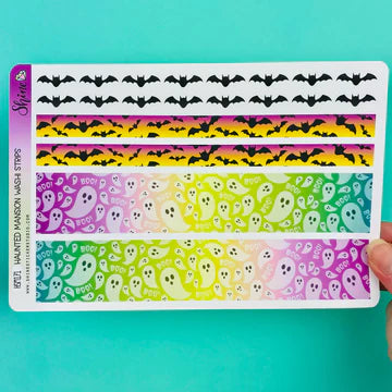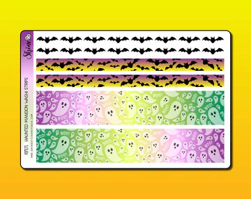 This listing is for a sheet of washi strip stickers featuring artwork from our Haunted Mansion collection. These are about 6.5" long, making them perfect for larger planners such as the Recollections, Happy Planner, Erin Condren and more.