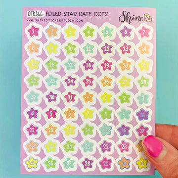 This listing is for one sheet of holographic foiled star date dots, available in a variety of color options. These are .41" x .41".