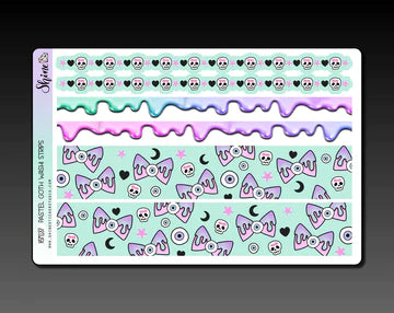 This listing is for a sheet of washi strip stickers featuring artwork from our Pastel Goth collection. These are about 6.5" long, making them perfect for larger planners such as the Recollections, Happy Planner, Erin Condren and more.