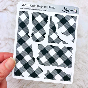 Shine Sticker Studio White Plaid Torn Paper Stickers