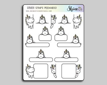 This listing is for one sheet of these adorable and functional peekaboo stickers featuring our character, Star the Unicorn. These stickers will fit most planners. There are 14 stickers on the sheet.