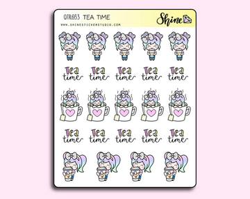 This listing is for one sheet of these cute tea stickers featuring hand-lettering and our character Luna with light skin tone.