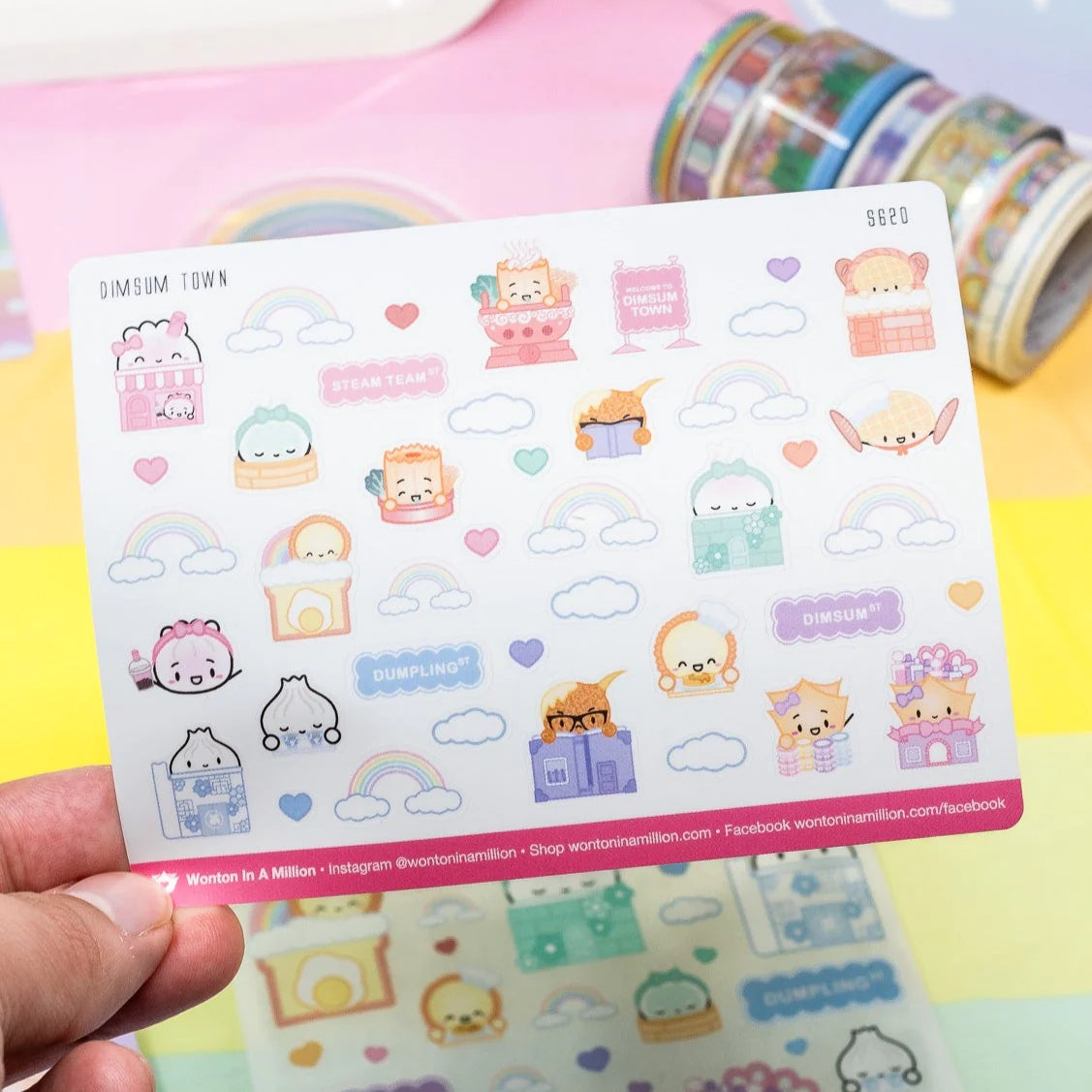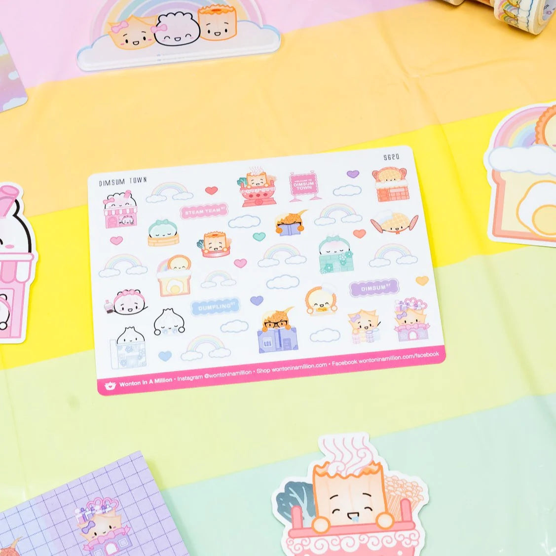 Come visit Dimsum Town with us, and explore the places where the members of the Steam Team hold their birthday parties, get their stationery supplies, pick up their favorite pastries, and hang out with their loved buns. 🌈 When anyone asks me what my pie-in-the-sky dream is for Wonton In A Million, I always say that it's to have an amusement park. Dimsum Town is what I imagine the shops & restaurants of that amusement park would look like! Featuring a gorgeous pastel rainbow colorway, this year's special anniversary collection includes a ton of limited edition specialty items and all of the stationery and accessories you need to imagine and commemorate your once-in-a-lifetime excursion to Dimsum Town.