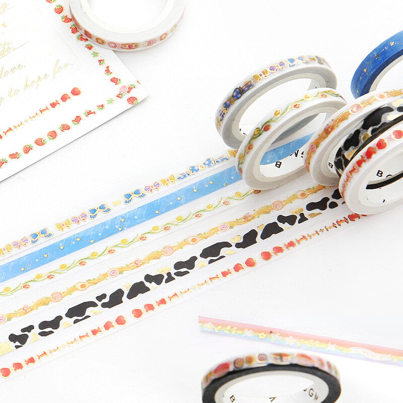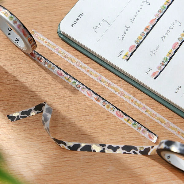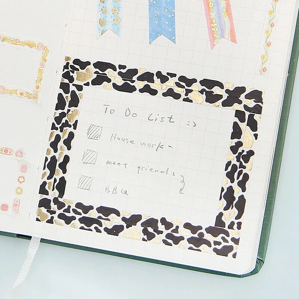 Moo-ve over plain designs—here comes the Cow Print Skinny Gold Foil Washi Tape by BGM! This playful yet chic washi tape combines adorable black-and-white cow spots with a dazzling touch of gold foil for a truly unique and udder-ly fabulous design. 🌟