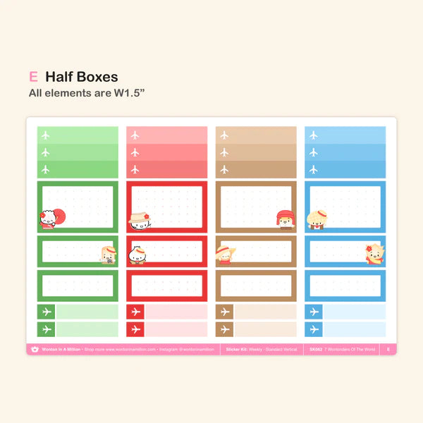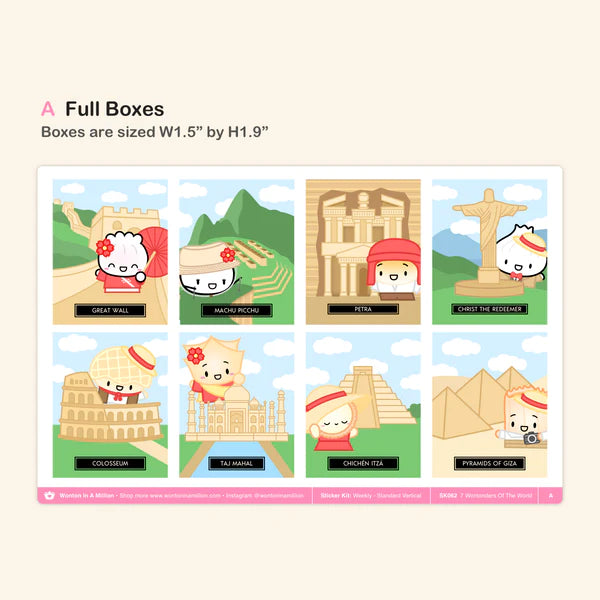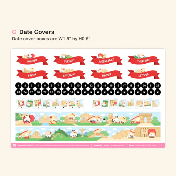 - JOURNALING KIT STICKERS - 7 Wontonders Of The World (Journaling Kit) - (C) Date Covers & Washi