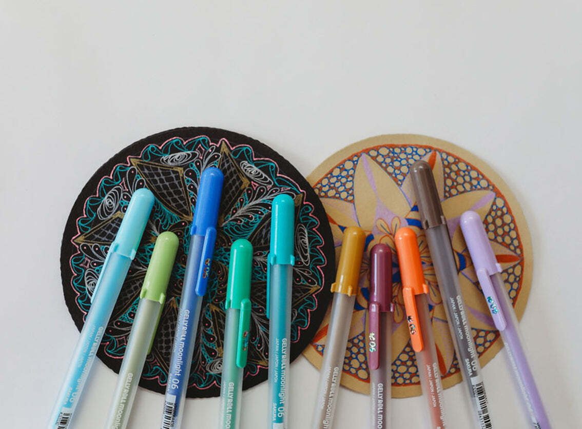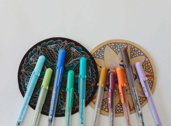 Unlike the regular Gelly Roll line, the Moonlight's ink gleams under ultra violet light.