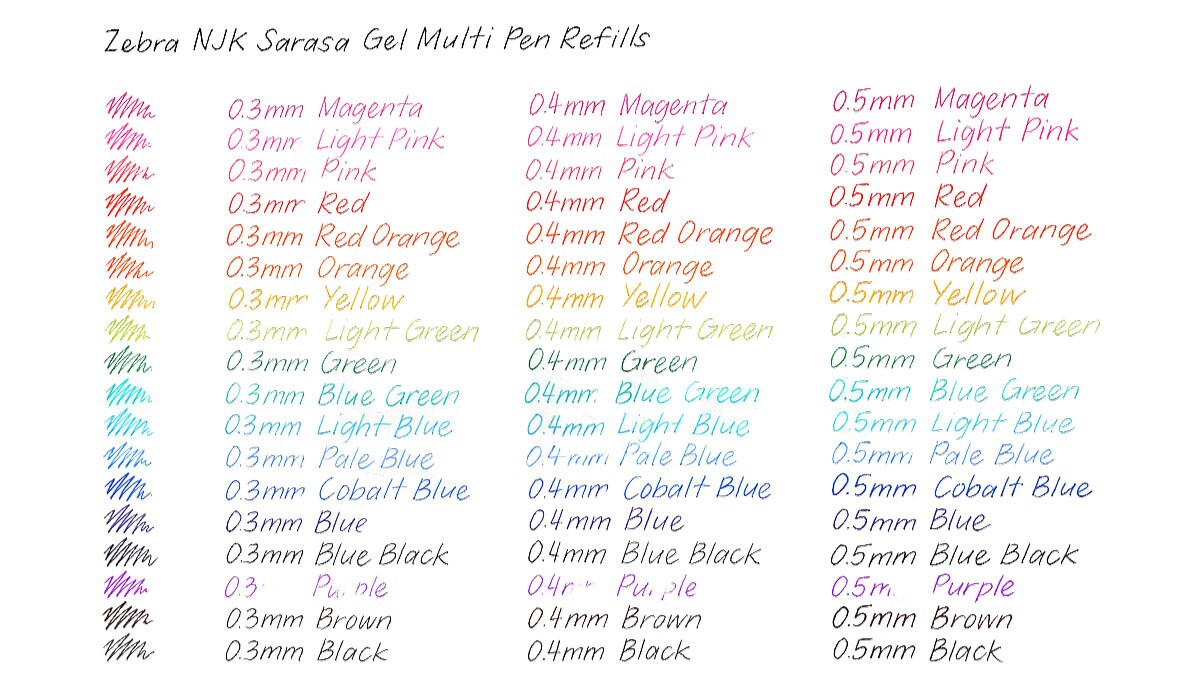 The Zebra Sarasa Select gel ink cartridges feature the same vibrant ink you know and love from the Sarasa Clip line of gel pens. These Selects are made for customizing barrels in the Zebra Select Barrels.
