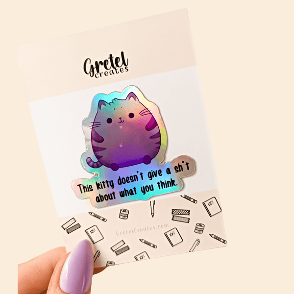 This Kitty Doesn't Give a Sh*t Holographic Decorative Vinyl Die Cut Sticker