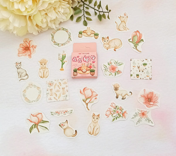 Minimalist Cat Scrapbook Deco Stickers, Pale Pink Floral Sticker Flakes