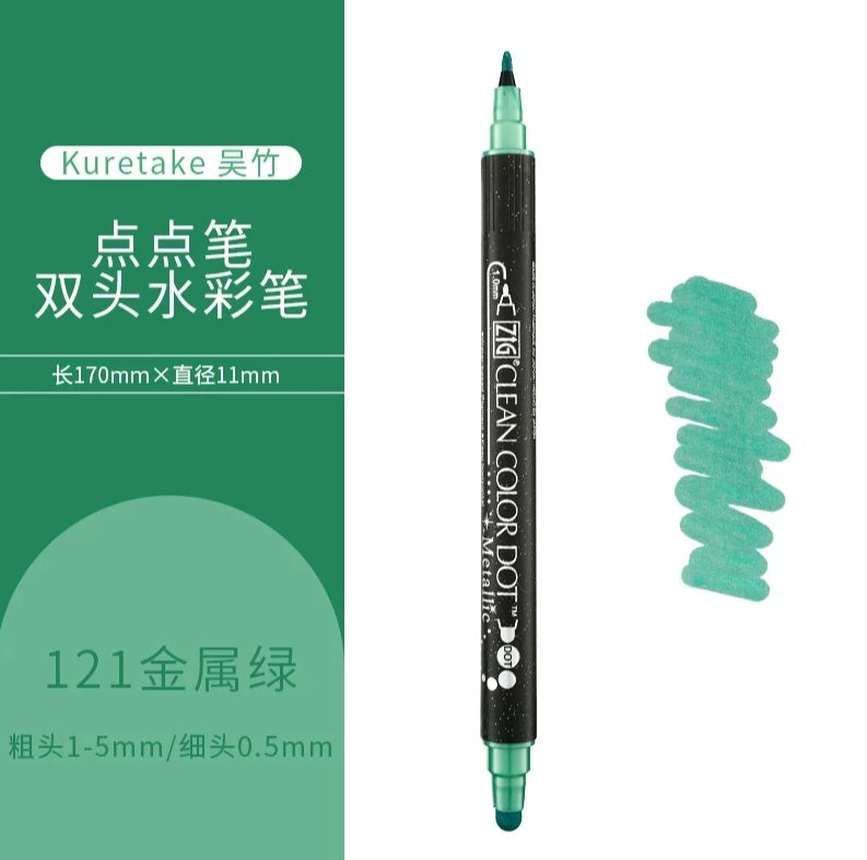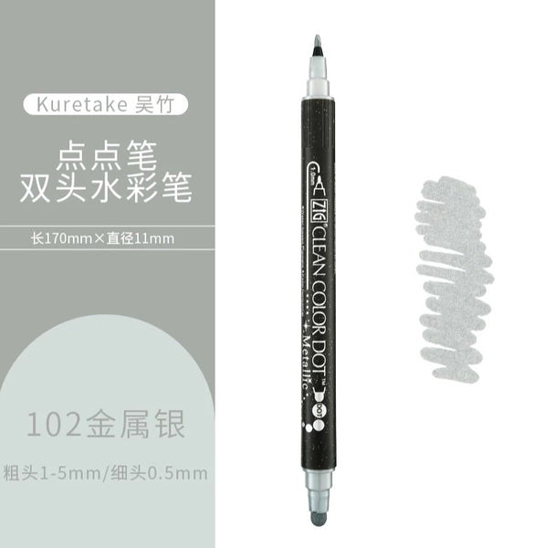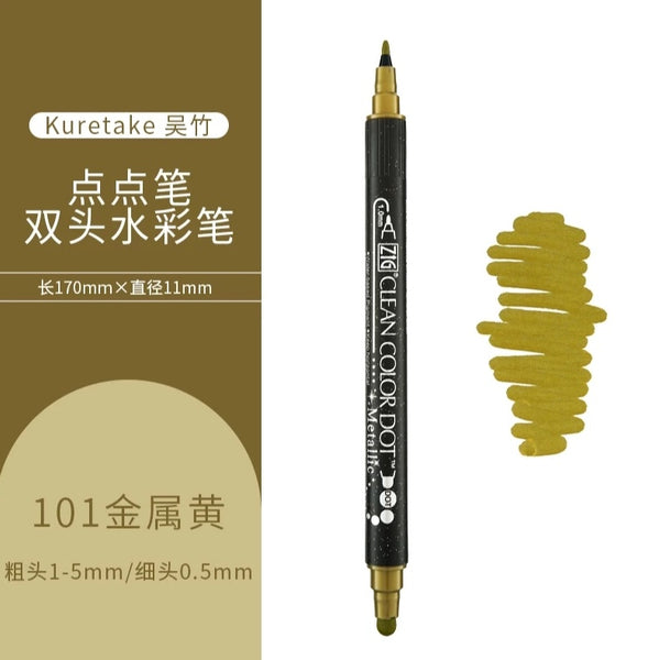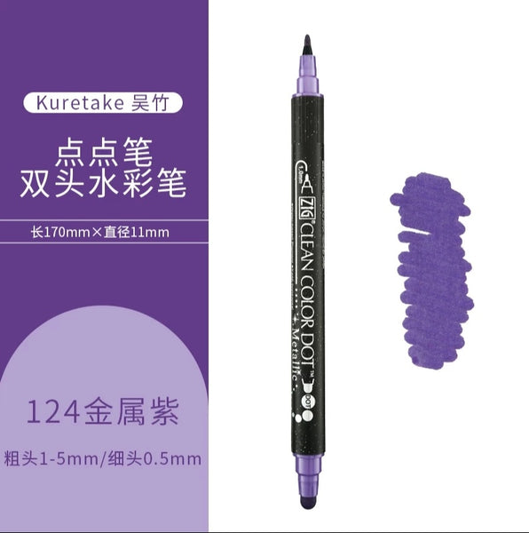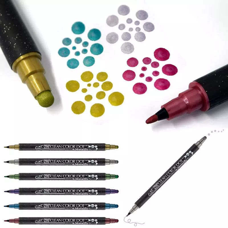 The Kuretake ZIG Clean Color Dot pens are perfect for bullet journaling and craft projects. They are dual-tip markers with a 0.5mm fine tip on one end and a flexible dot tip on the other. You can draw various sizes of dots by adjusting the pressure applied to the pen tip.