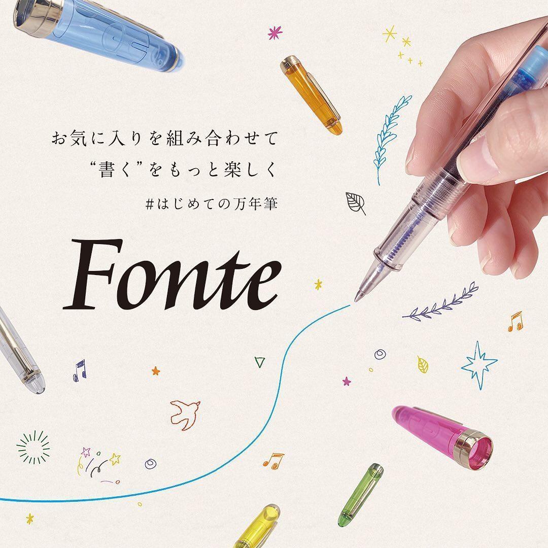 It comes in clear body so that the color of the ink inside can be seen; and the word "Fonte" comes from Italian word for "spring", with the image of ink gushing out from the nib just like a fountain. The pen gained popularity in Japan in 2019 as a starter fountain pen.