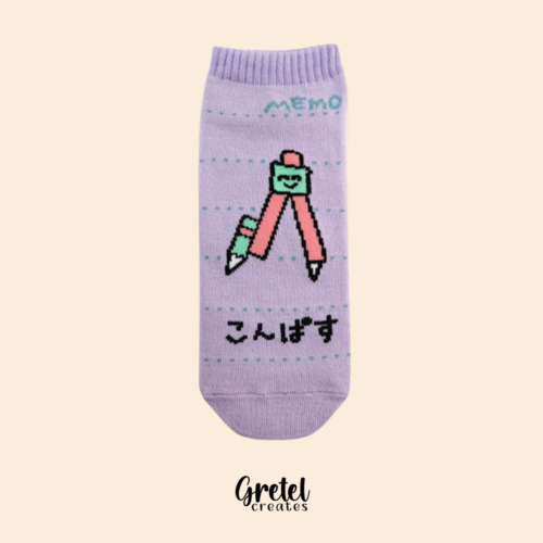 Okutani Kawaii Stationery Ankle Socks - Compass
