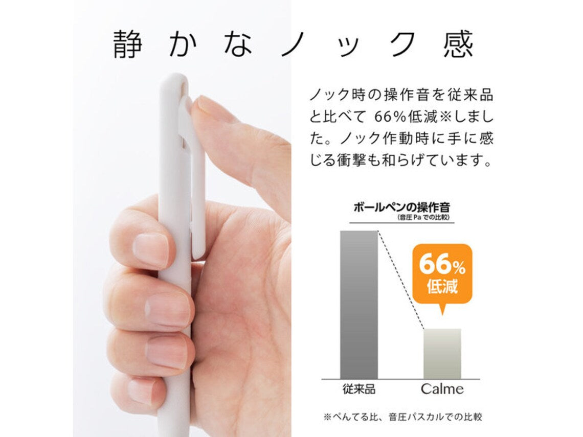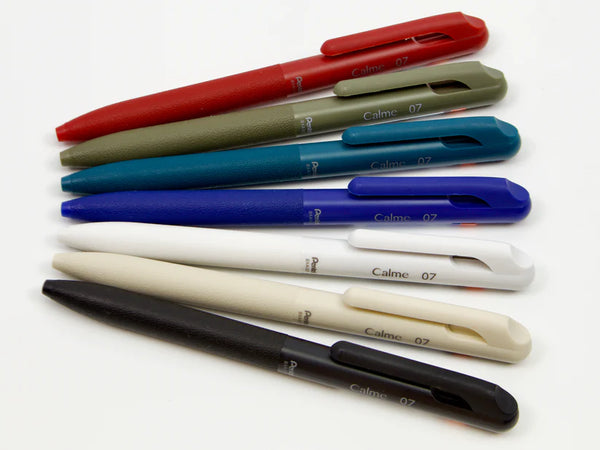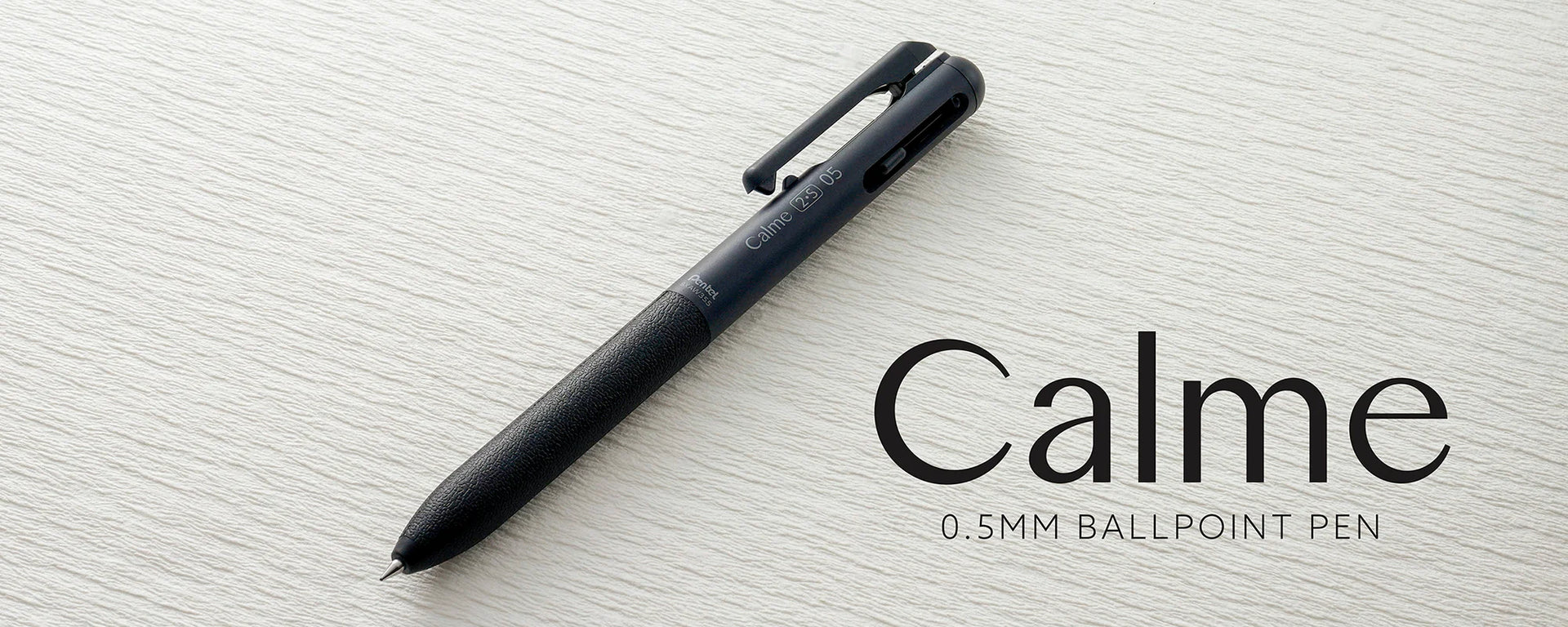 Experience the peace and quiet of the Pentel Calme's ultra-smooth clicker-finger-friendly pen! Its leather-like grip section offers ergonomic comfort and an easy grip. Plus, its low-viscosity Vicuña ink provides a vibrant writing experience like no other. So don't be surprised when your writing becomes smooth as silk!• Tip size: 0.5 mm• Barrel colour: Various• Ink colour: Various• Oil-based, take-on-anything ink!
