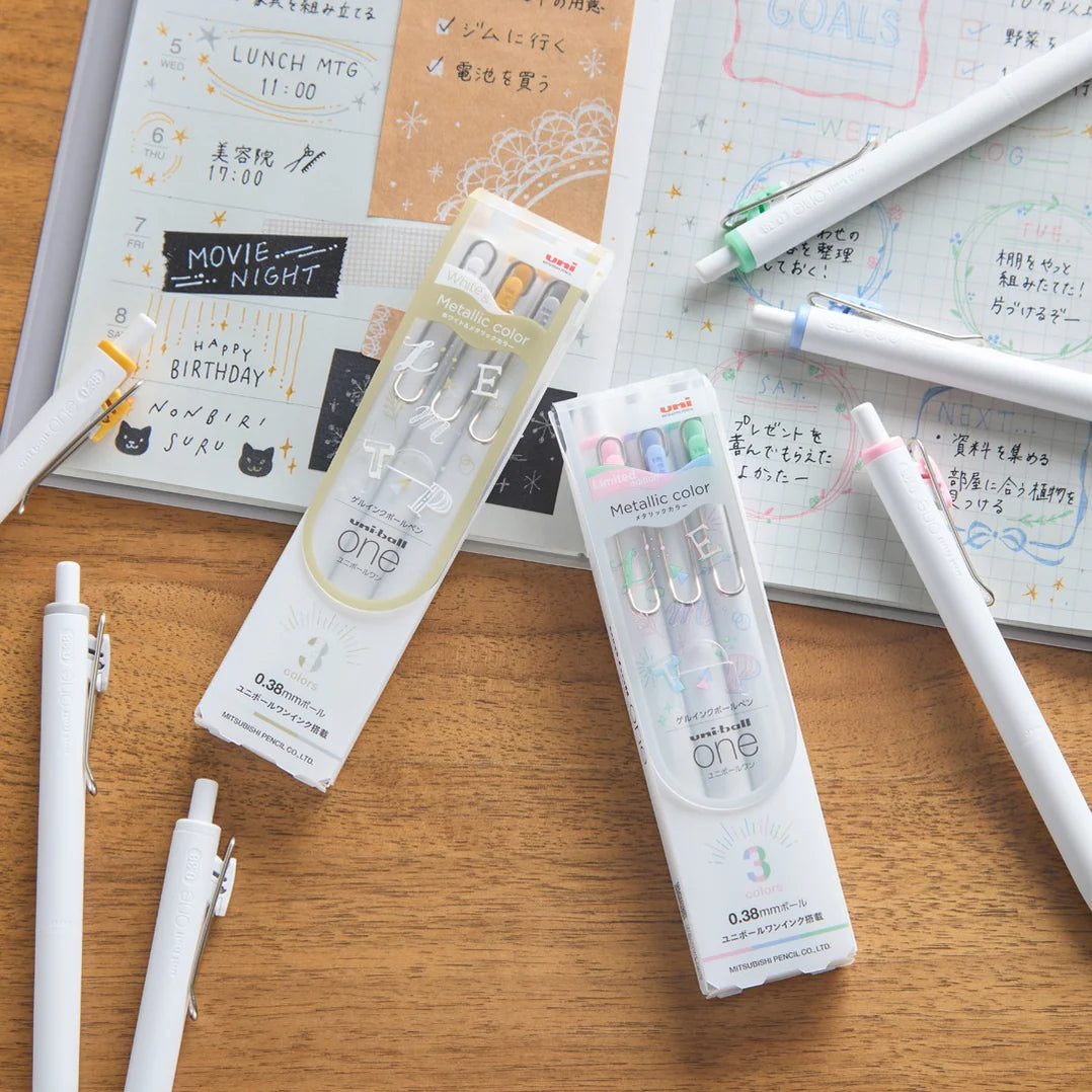 Available in two sizes, 0.38mm and 0.5m in 6 colors; Shimmer Soft Pink, Shimmer Light Blue, Shimmer Mint Green, White, Gold, Silver. Also available is the Regular Set (white, gold, silver) and Shimmer set (shimmer soft pink, shimmer light blue, shimmer mint green)