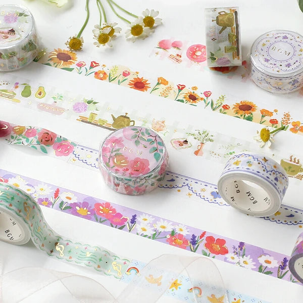 Let your projects flourish with the Garden Daisy Gold Foil Washi Tape by BGM! This charming tape is adorned with delicate white daisies dancing across a cheerful pastel background, all sprinkled with shimmering gold foil accents for that extra sparkle. 🌞✨ Perfect for adding a fresh and uplifting vibe, this washi tape will bring your crafts to life with the beauty of a blooming garden.
