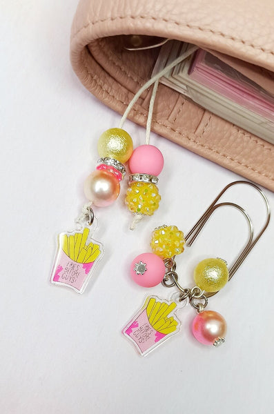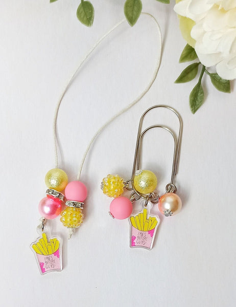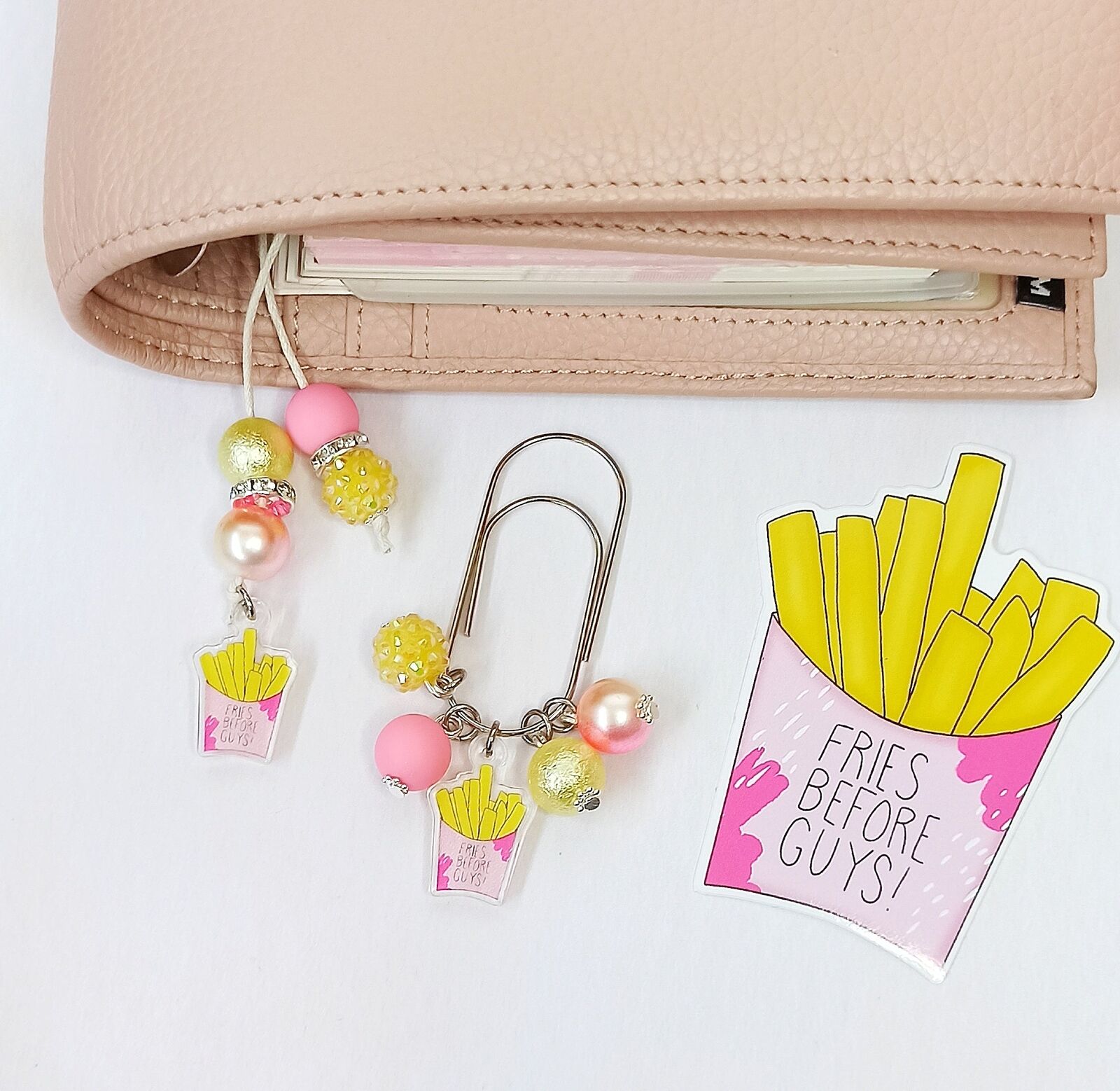 This listing is for one planner dangle of your choice, decorated with a recycled acrylic fries charm and acrylic beads.