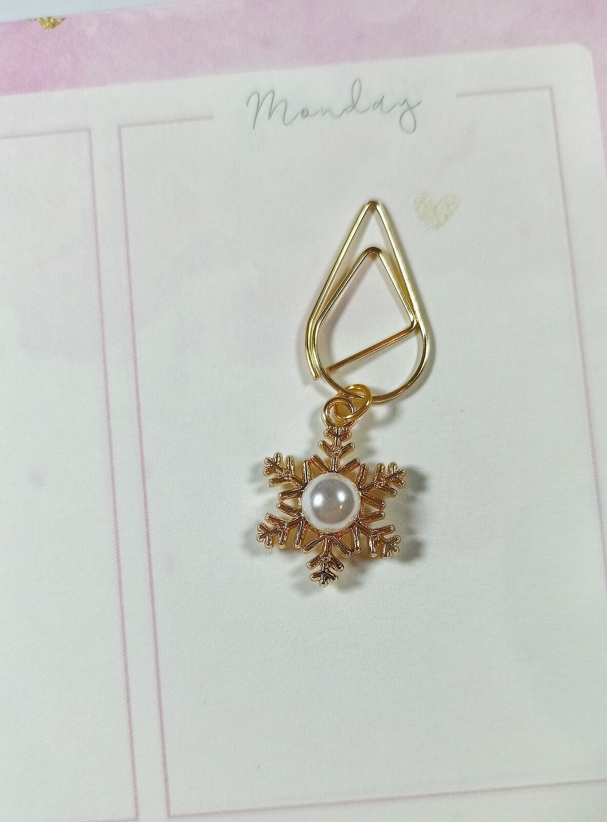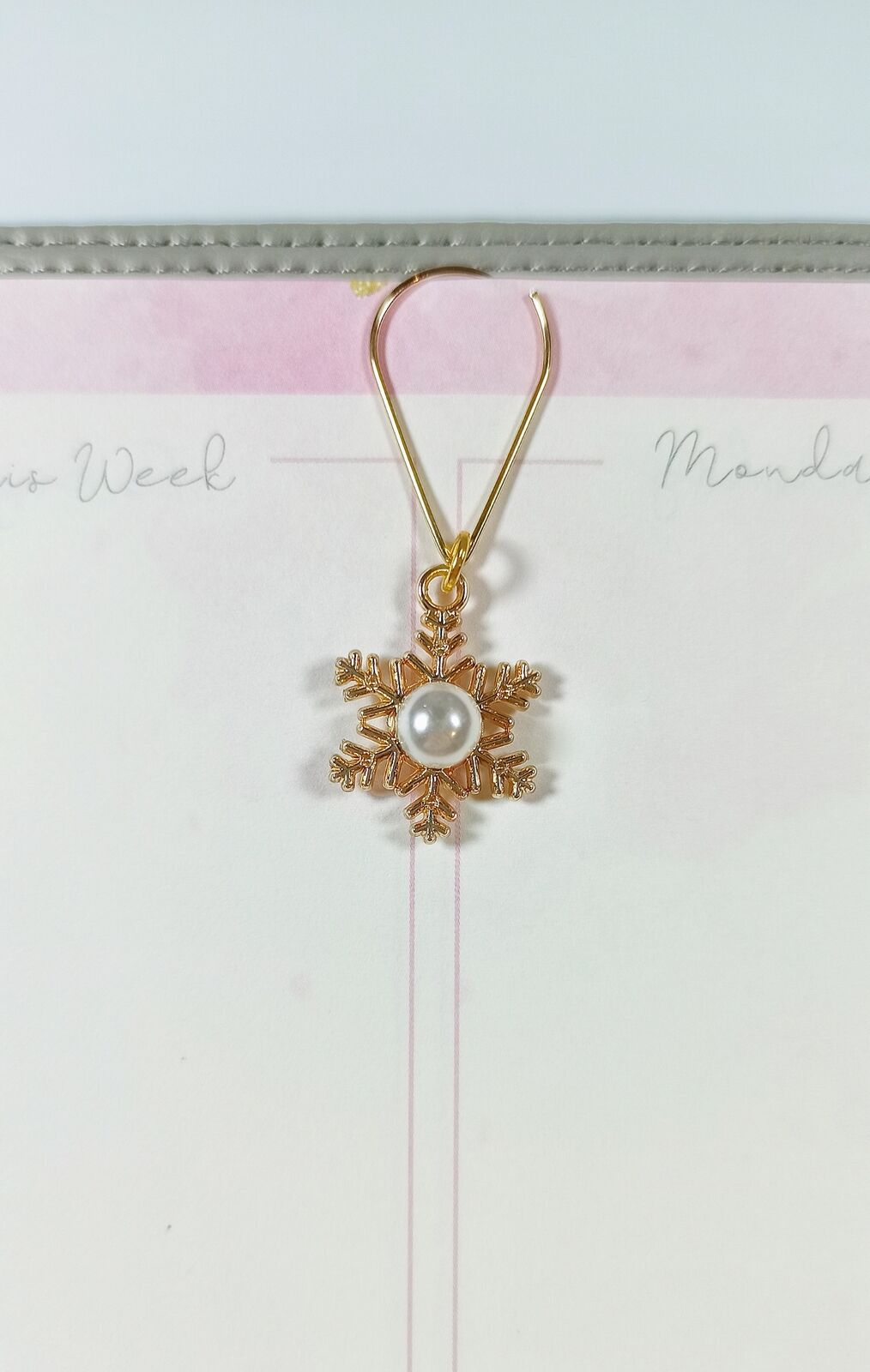 Minimal Gold Winter Planner Dangle Jewellery, Gold Snowflake Planner Charm, Plan