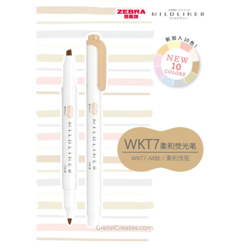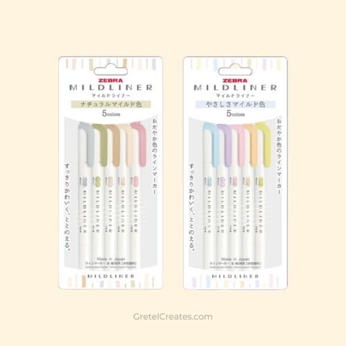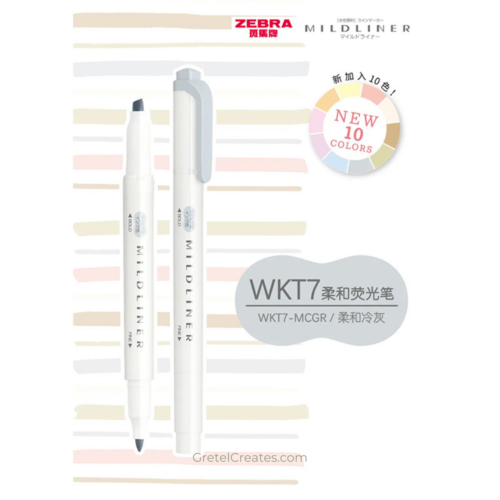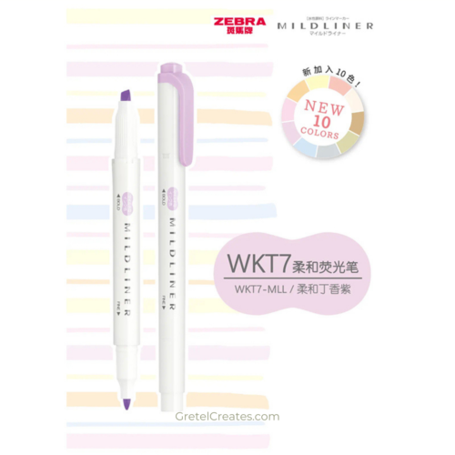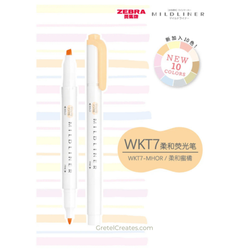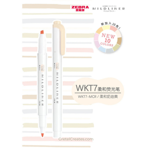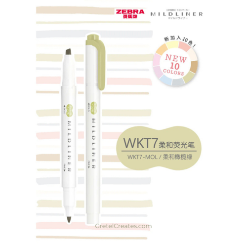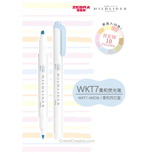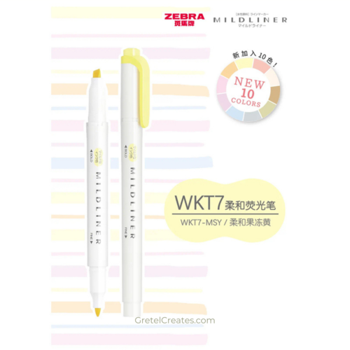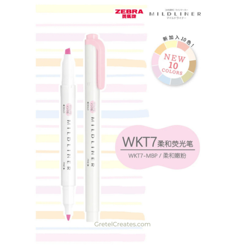 The Mildliner Double-Ended Highlighter & Marker is the OG tool for artists, students, and everyday use. The two unique ends—including a chisel tip and a bullet fine tip—and its mild translucent ink make it a truly unique product that is often imitated but never duplicated. Zebra Mildliners feature a unique mild colour that shows up softly on paper and a broad and fine point tip for all hand lettering and marking applications. Water-based ink, acid-free and archival quality.