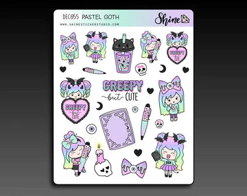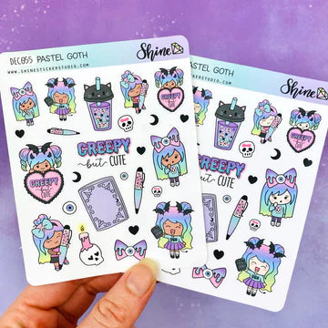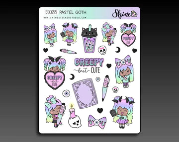 This listing is for one sheet of these adorable stickers featuring elements from our Pastel Goth collection. Choose light or dark skin tone for Luna.
