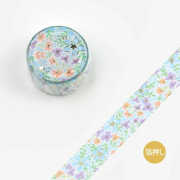 🌸 Wander Through a Blue Flower Field with BGM’s Gold Foil Washi Tape! 🌟