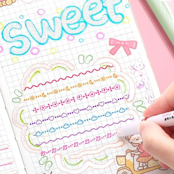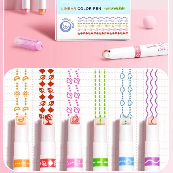 Roller Linear Colour Stamp Pen Set - Various Designs: Elevate your writing game with these funky pens featuring soft grips and smoother glide. No more smudging or harmful materials, just six durable, high-quality colours for effortless mark-making. Safe, fun, and game-changing - let these pens unleash your imagination!