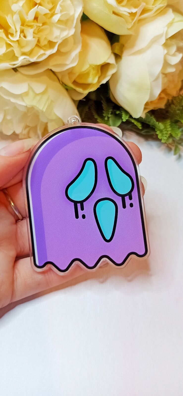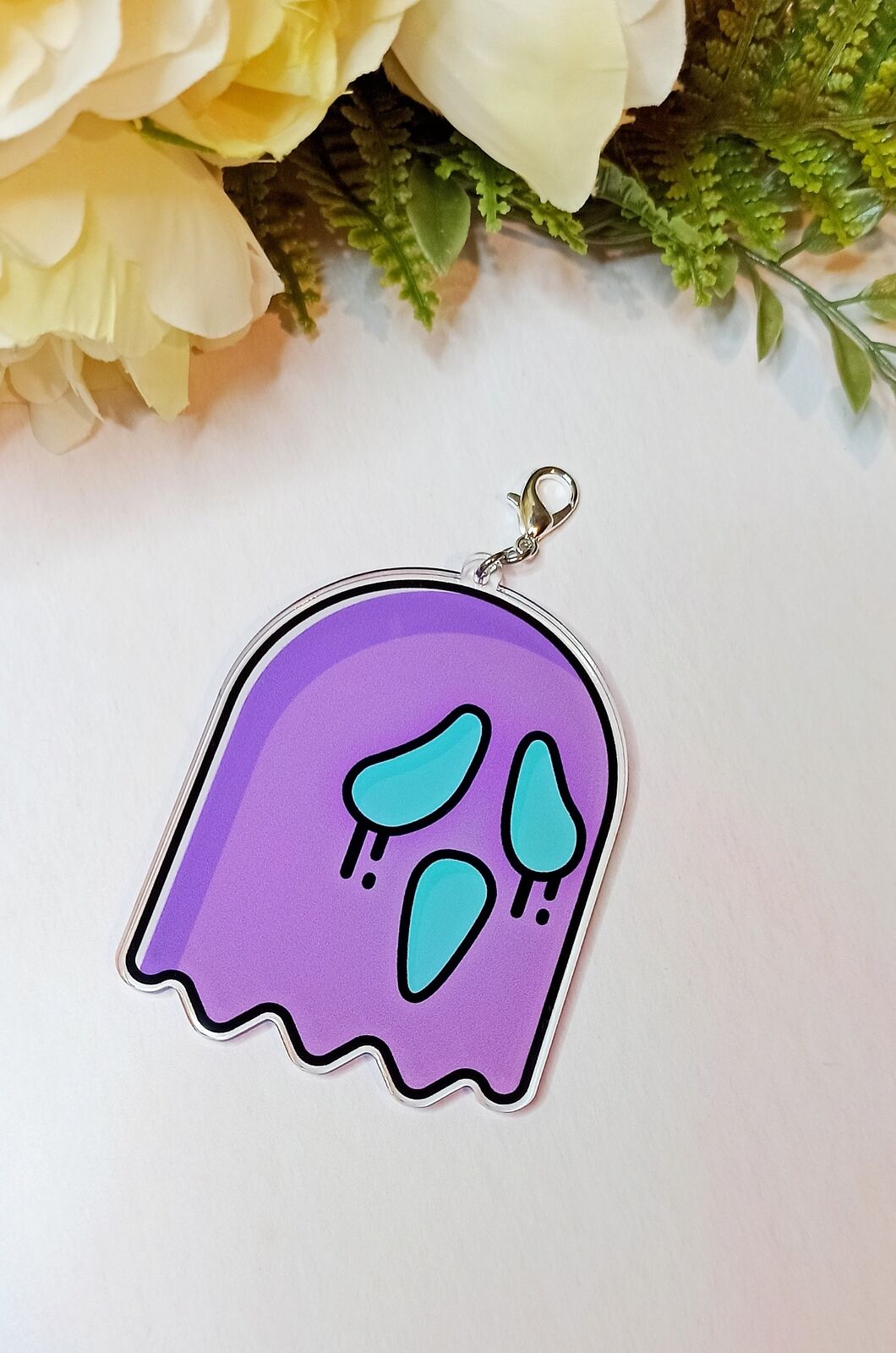 This recycled acrylic washi cutter is 80x60mm and can be fixed to a lobster clasp or ball chain.