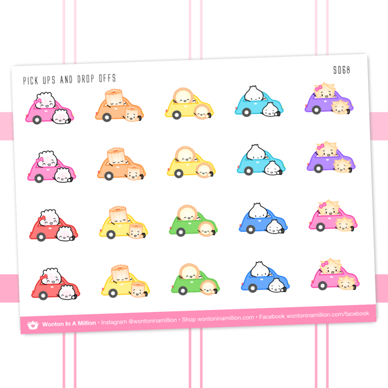 Mark off pickups and dropoffs in your planners, scrapbooks, bullet journals and more with these adorable stickers of the Dimsum Steam Team!