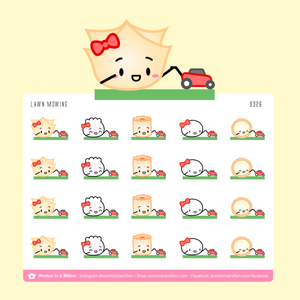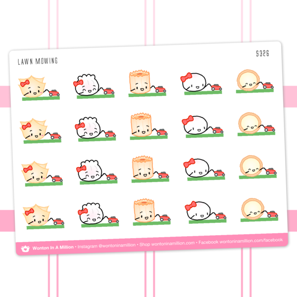 Use these adorable stickers of the Dimsum Steam Team mowing their lawn in your planners, scrapbooks, bullet journals and more!
