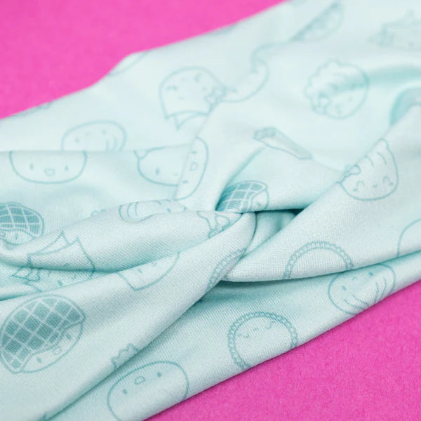 - ~9"L x ~3"W cotton elastic headband with printed design