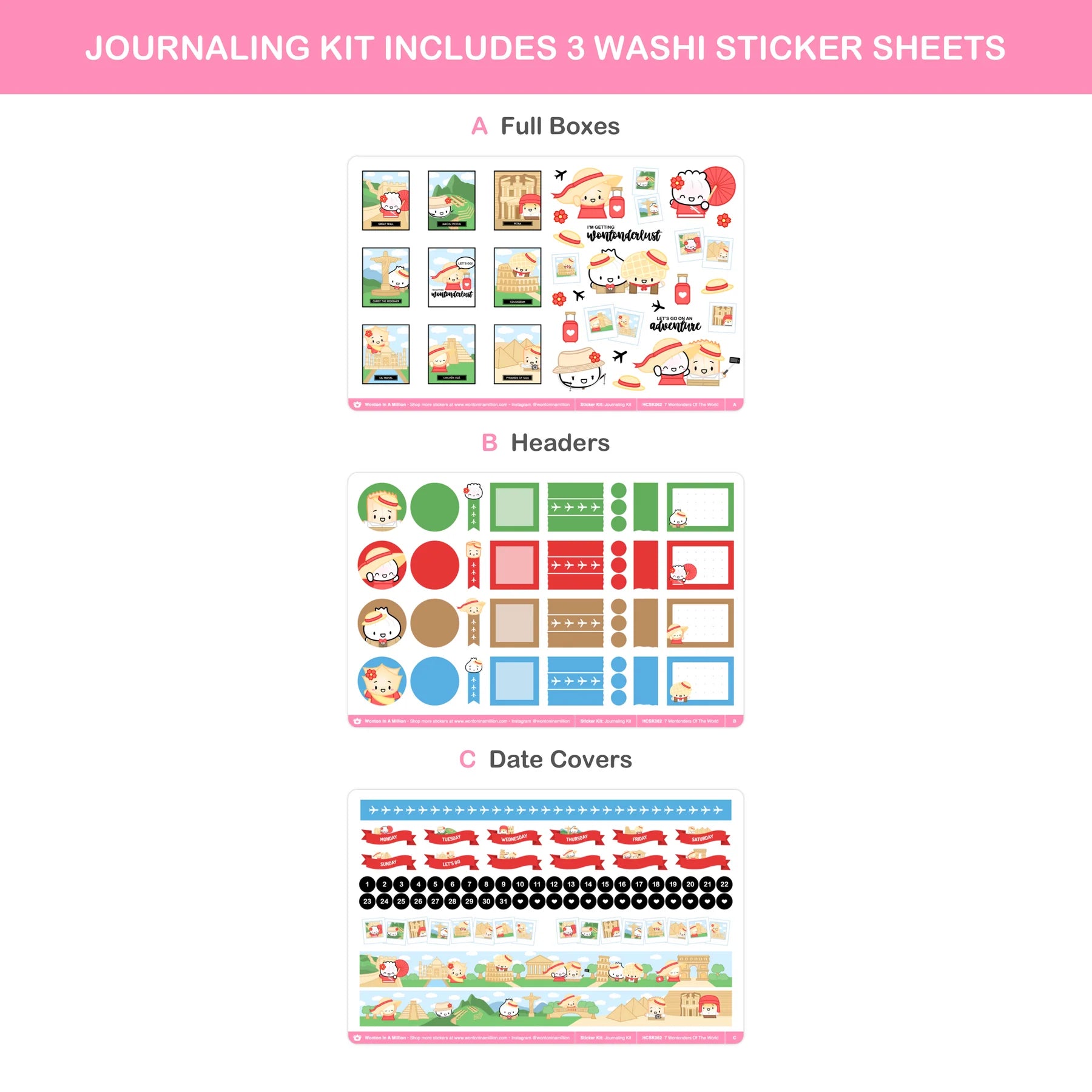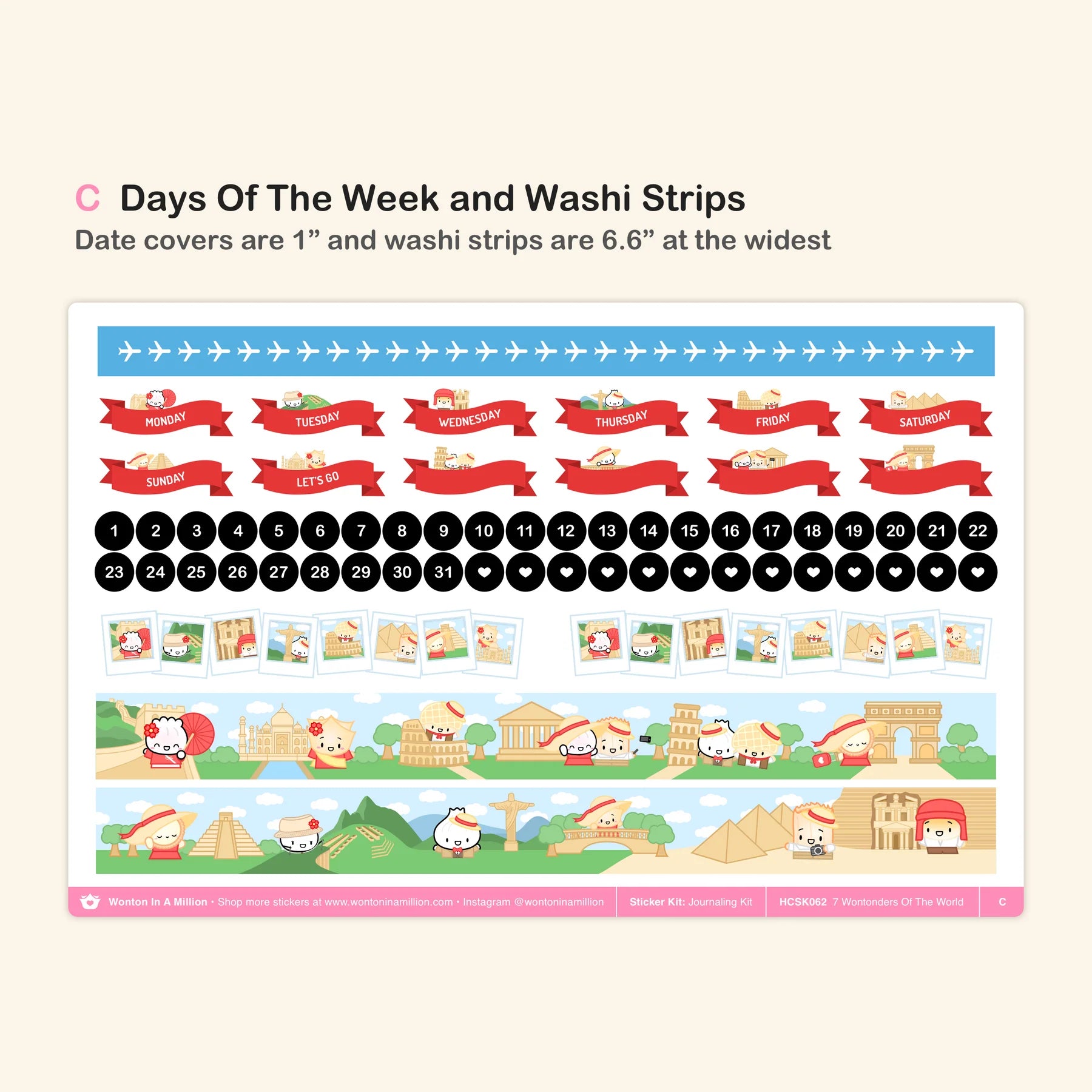 - JOURNALING KIT STICKERS - 7 Wontonders Of The World (Journaling Kit) - (C) Date Covers & Washi