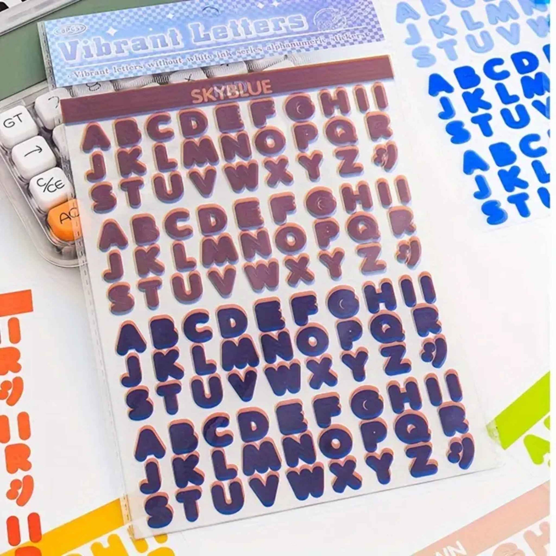 Each pack includes eight coordinated colour sheets, giving you plenty of letters to mix and match. Choose Pack A for transparent stickers that blend beautifully into your pages or Pack B for opaque stickers that add bold, cheerful impact.