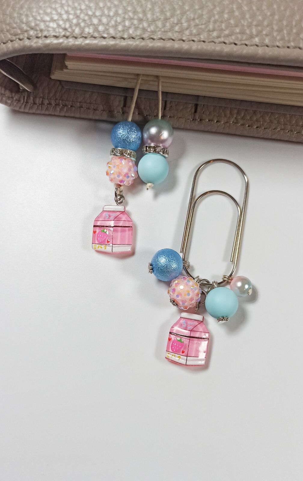 Strawberry Milkshake Planner Dangle Jewellery, Pink & Blue Planner Charm, Planne