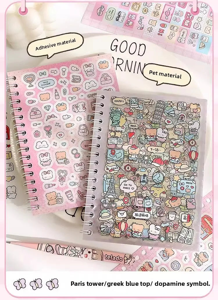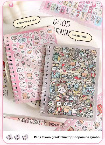Cute Scrapbook Supplies for Planners, Journals & Crafts | Aesthetic Journaling Kit with PET & Paper Stickers|1000+ Kawaii Sticker Book