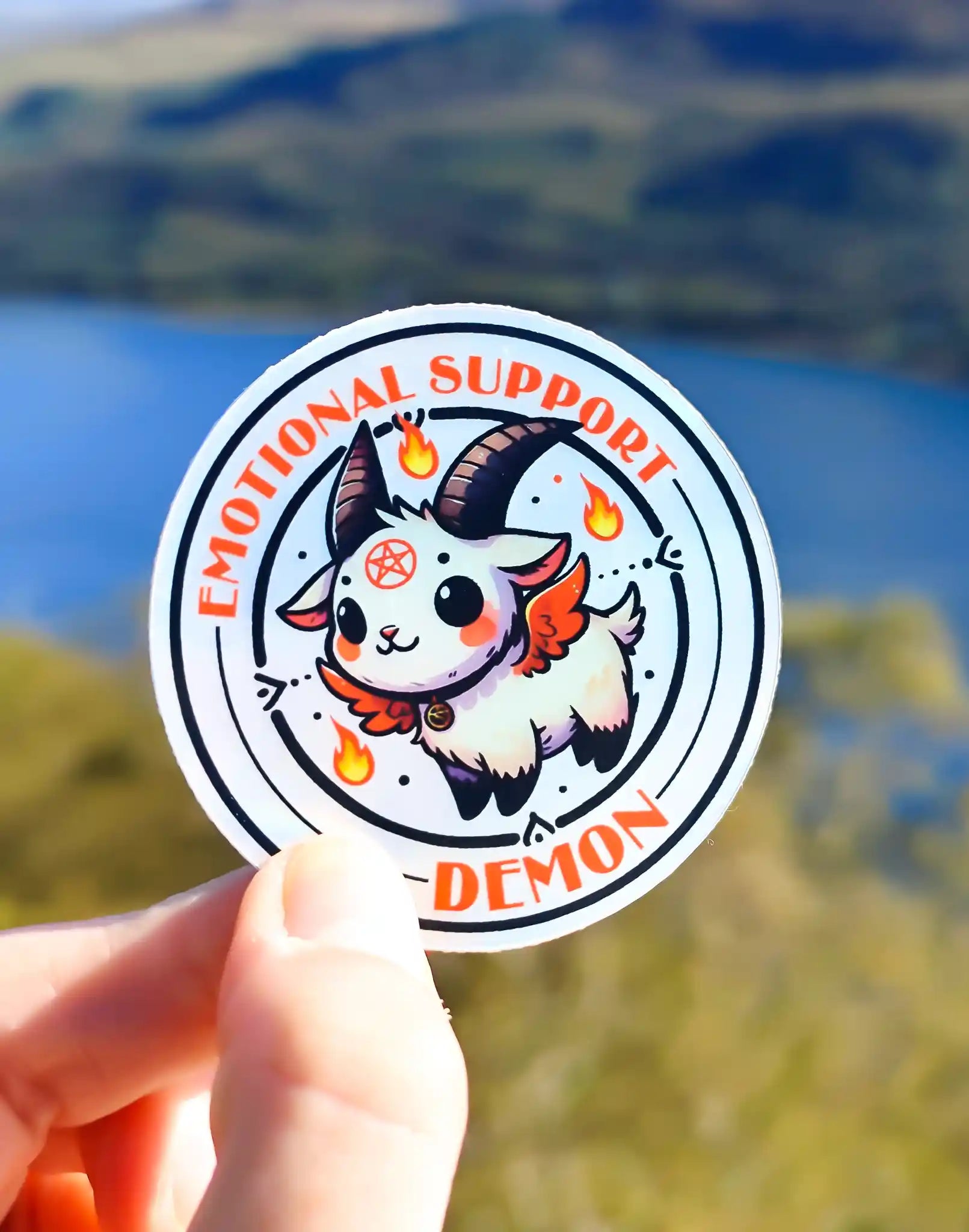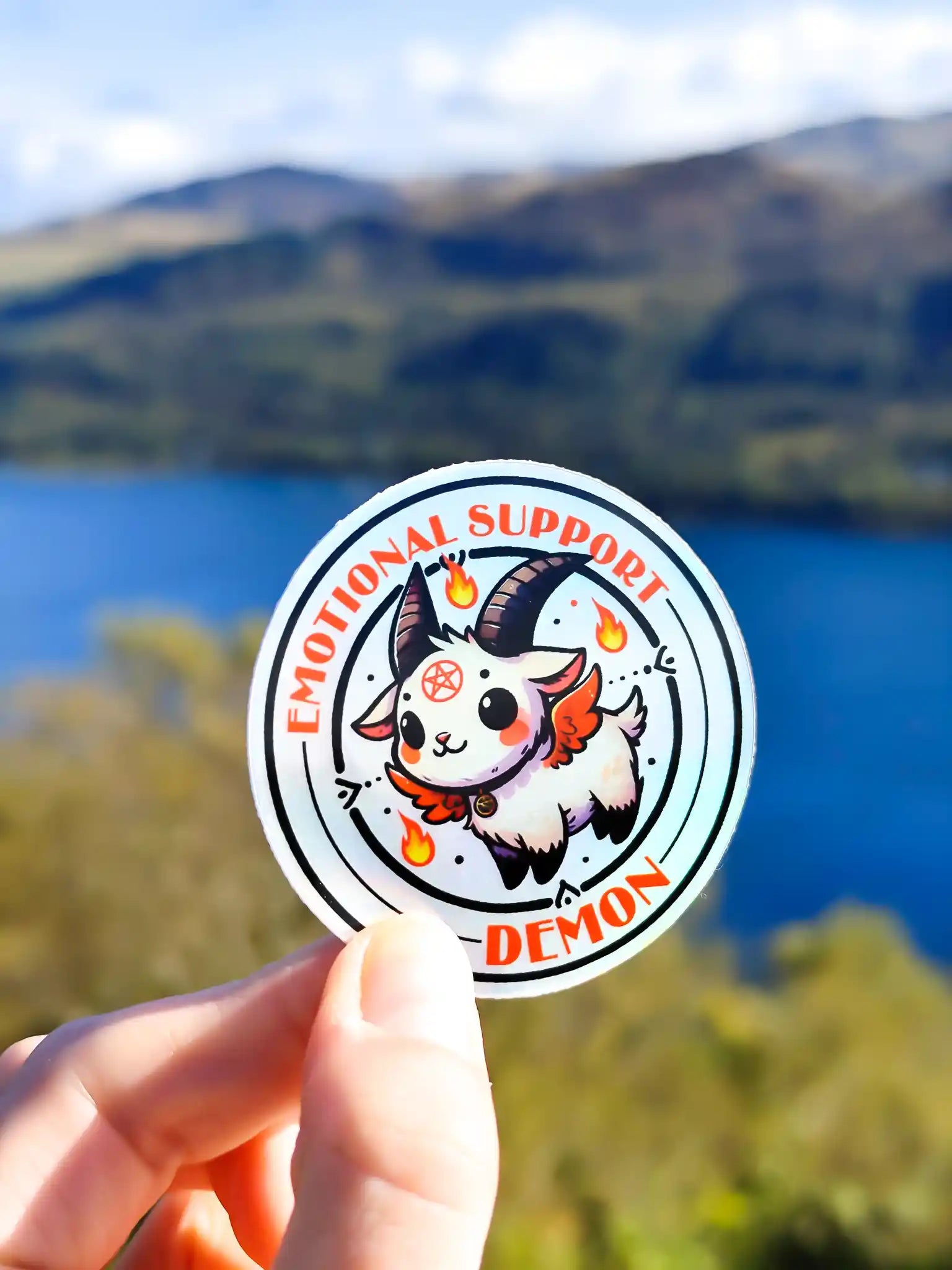 Holographic Emotional Support Demon Vinyl Sticker | Waterproof Permanent Quirky Planner Decal | Dark Humour Goth Gift