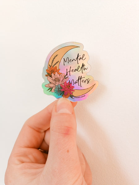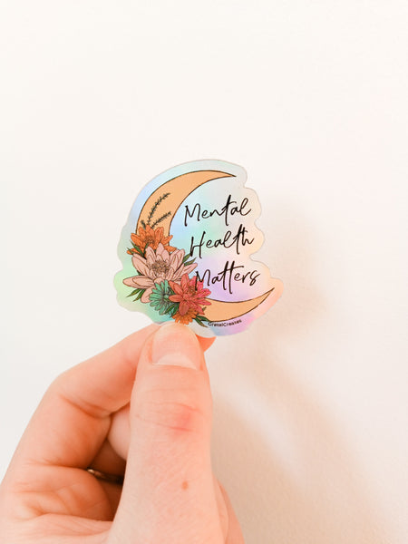 Floral Mental Health Matters Holographic Decorative Vinyl Sticker