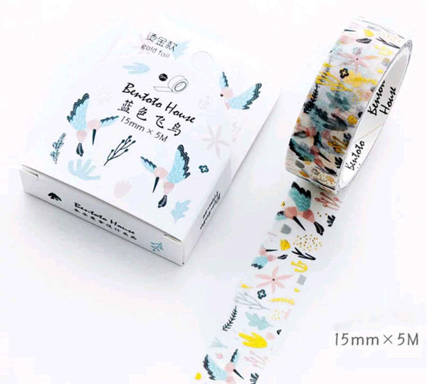 Foiled Bird Washi, Gold Washi Tape, Bird Craft Tape, Kawai Paper Tape