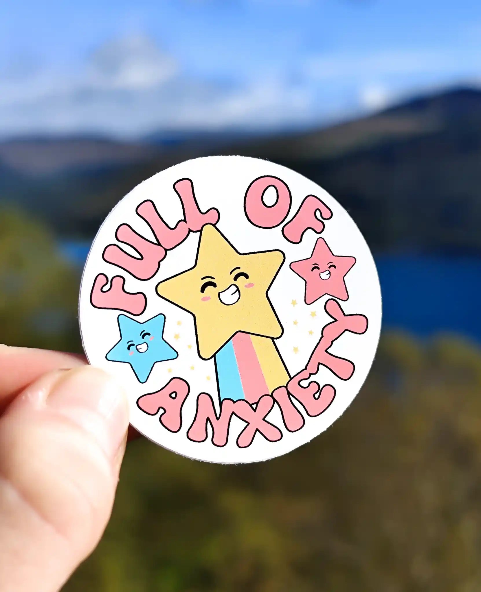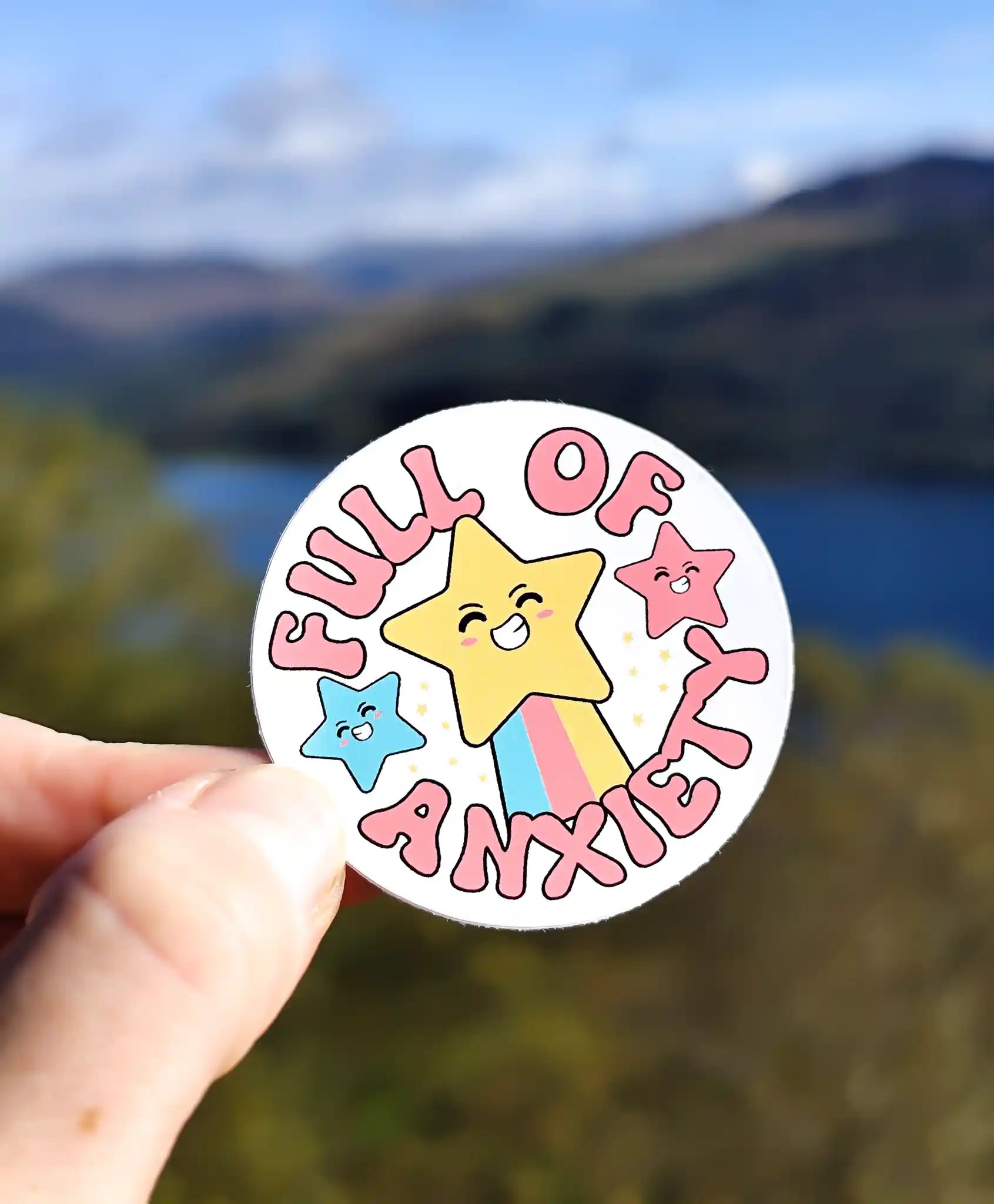 Full of Anxiety Vinyl Sticker | Cute Laptop Decal | Quirky Mental Health Stationery | Funny Self Care Scrapbook Sticker Gift