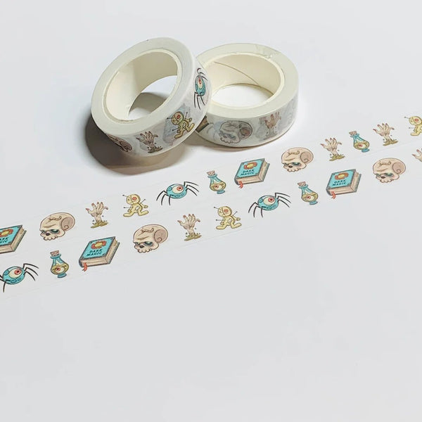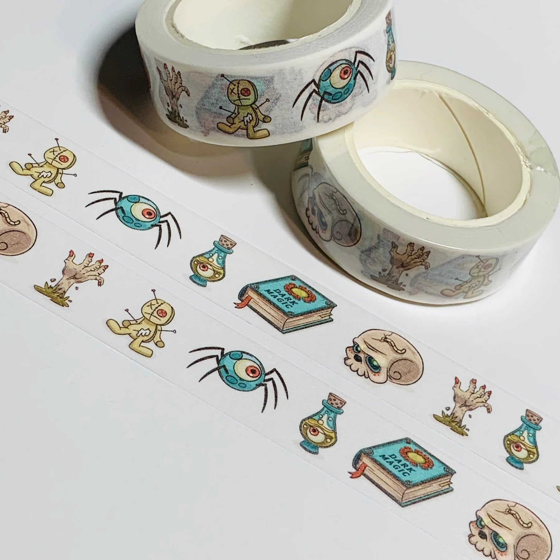Get ready to enchant your projects with our Voodoo Washi Tape! 🎃 Featuring a bewitching cast of characters – from adorable voodoo dolls 🧸🪡 to creepy potion bottles 🧪, eerie eyeball spiders 🕷️, and spellbinding "Dark Magic" books 📖 – this tape is here to bring spooky fun to your creations.