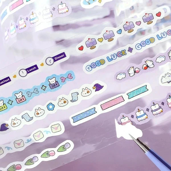 - Kawaii Animal Kingdom (in Purple!): From playful cats and dogs to cuddly bears and more, this roll is packed with all your favorite furry friends, each one sporting their own unique sparkle and a delightful blue hue.