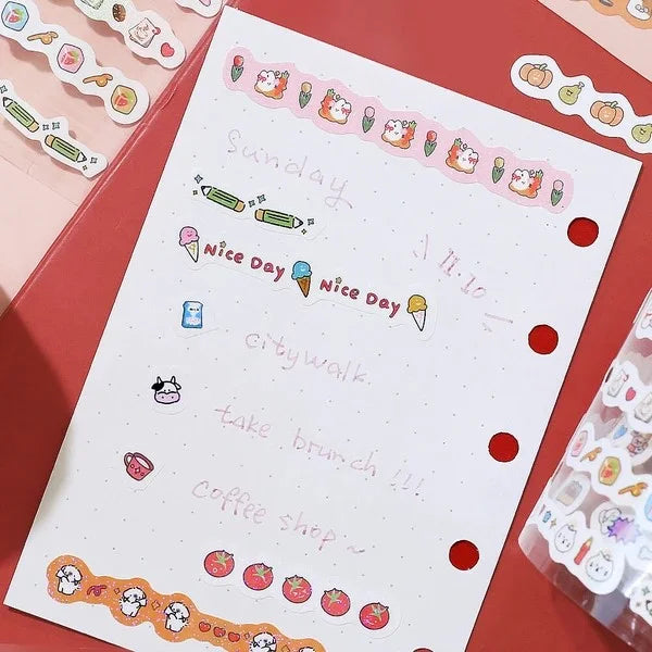 Unleash a Glittering Stampede of Cuteness! ✨ Kawaii Animal Glitter Roll Stickers are Here! 🐾 (In Adorable Red!)
