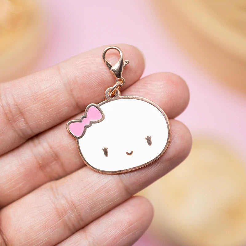 Featuring the bun-derful members of the Steam Team, this collection highlights our bun characters like Laila Bao, Charlie Bao, and Bolo Bob!- ~0.75" rose gold enamel charm with lobster clasp, ~1.5" total length of charm, chain, and clasp