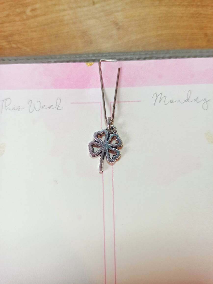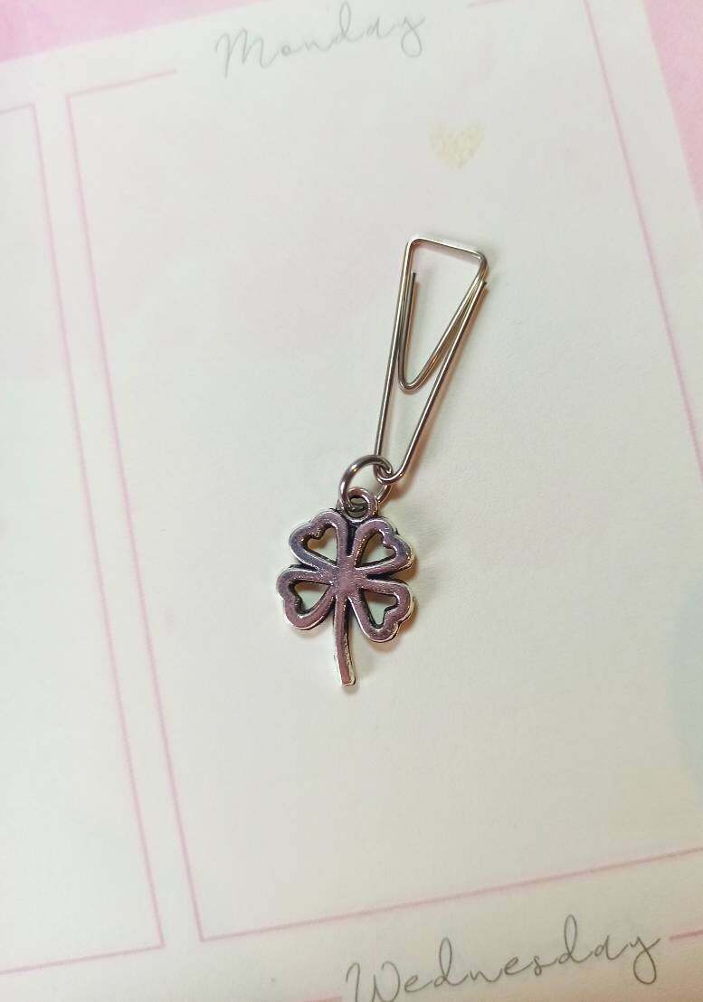 Minimal Silver Clover Planner Dangle Jewellery, Silver Lucky Four Leaf Clover Pl