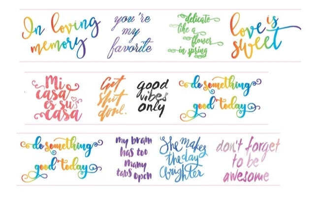 Design: Colorful, handwritten script with positive and motivational quotes.